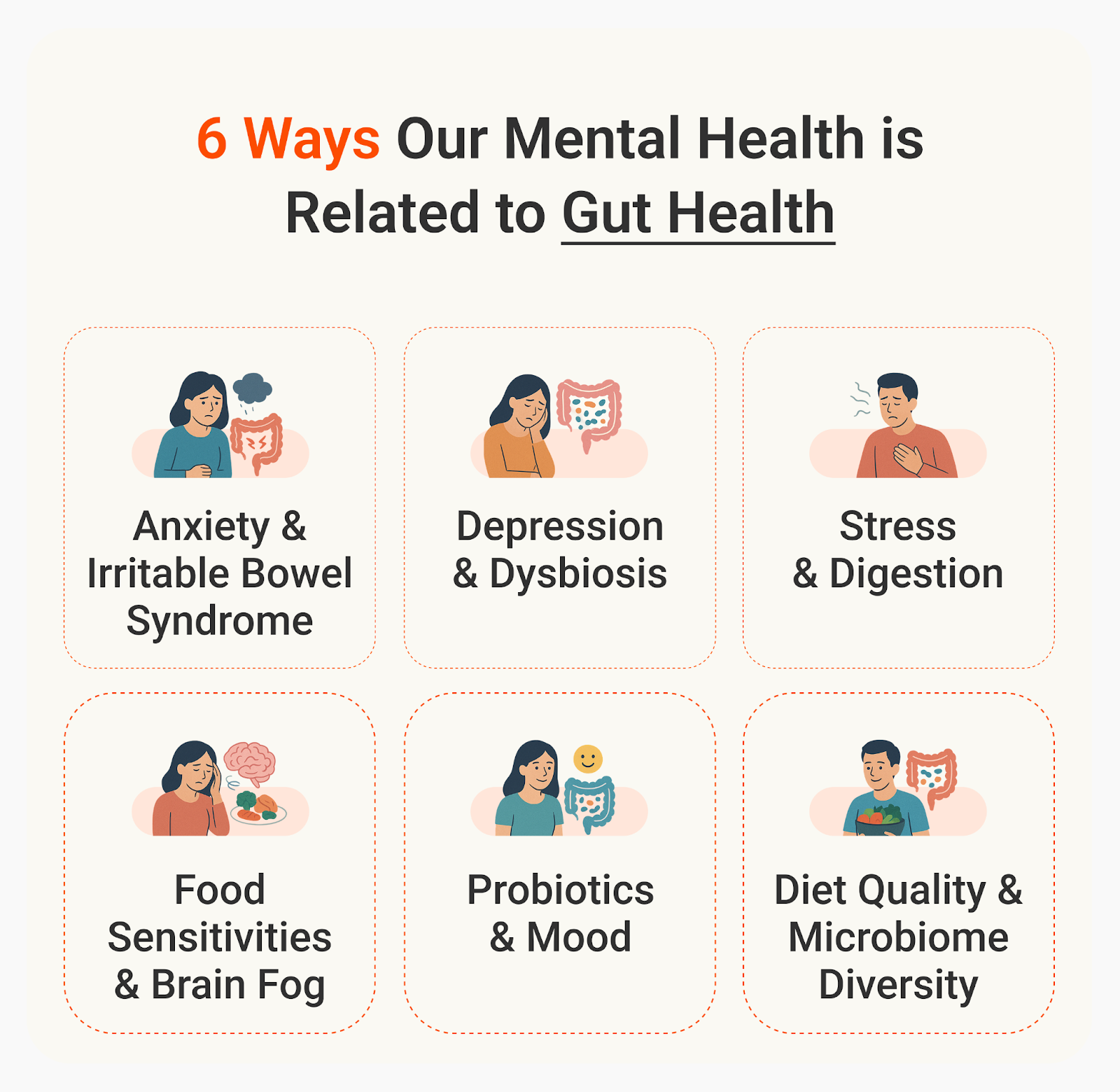 - Inflammation triggered by poor gut health can cross the blood-brain barrier, contributing to brain fog and low mood.